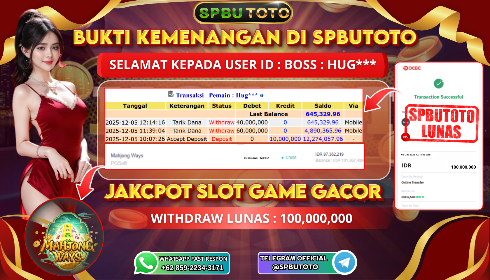 BUKTI JACKPOT SLOT GAMES 5 Desember 2025 Posted by Customer Service 2 MAHJONG WAYS 2 JUMAT, 05 DESEMBER 2025 RP 100.000.000,- SELAMAT KEPADA PEMENANG, SALAM JP! Updated: 10 Desember 2025 at 20:49 ◀ BUKTI JACKPOT SLOT GAMES PREDIKSI CHINA ▶