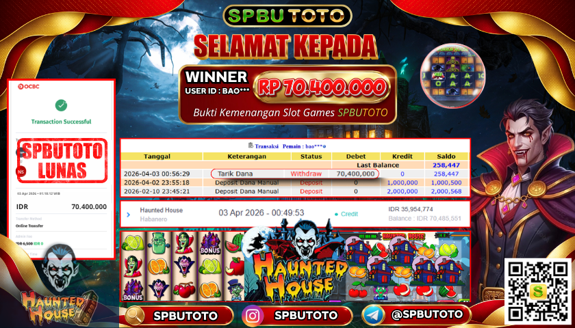 BUKTI JACKPOT SLOT GAMES 3 April 2026 Posted by Admin SPBUTOTO HAUNTED HOUSE JUMAT, 03 APRIL 2026 RP 70.400.000 SELAMAT KEPADA PEMENANG, SALAM JP Updated: 3 April 2026 at 06:57 ◀ BUKTI JACKPOT SLOT GAMES BUKTI JACKPOT SLOT GAMES ▶