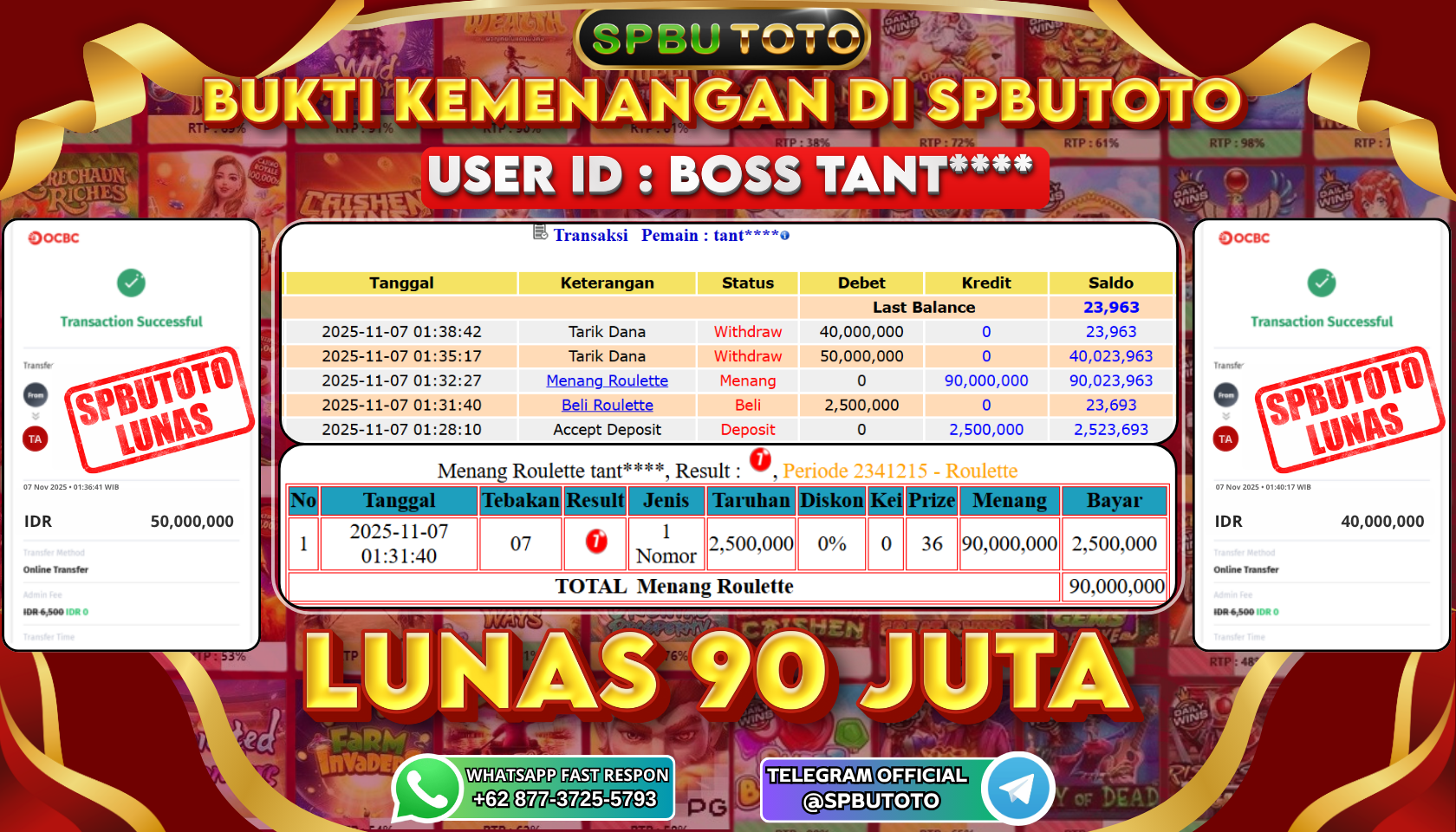 BUKTI JACKPOT LIVE GAME 7 November 2025 Posted by Admin SPBUTOTO ROULETTE JUMAT, 07 NOVEMBER 2025 RP 90.000.000,- SELAMAT KEPADA PEMENANG, SALAM JP! Updated: 7 November 2025 at 04:52 ◀ PREDIKSI TOTO MACAU 4D BUKTI JACKPOT SLOT GAMES ▶