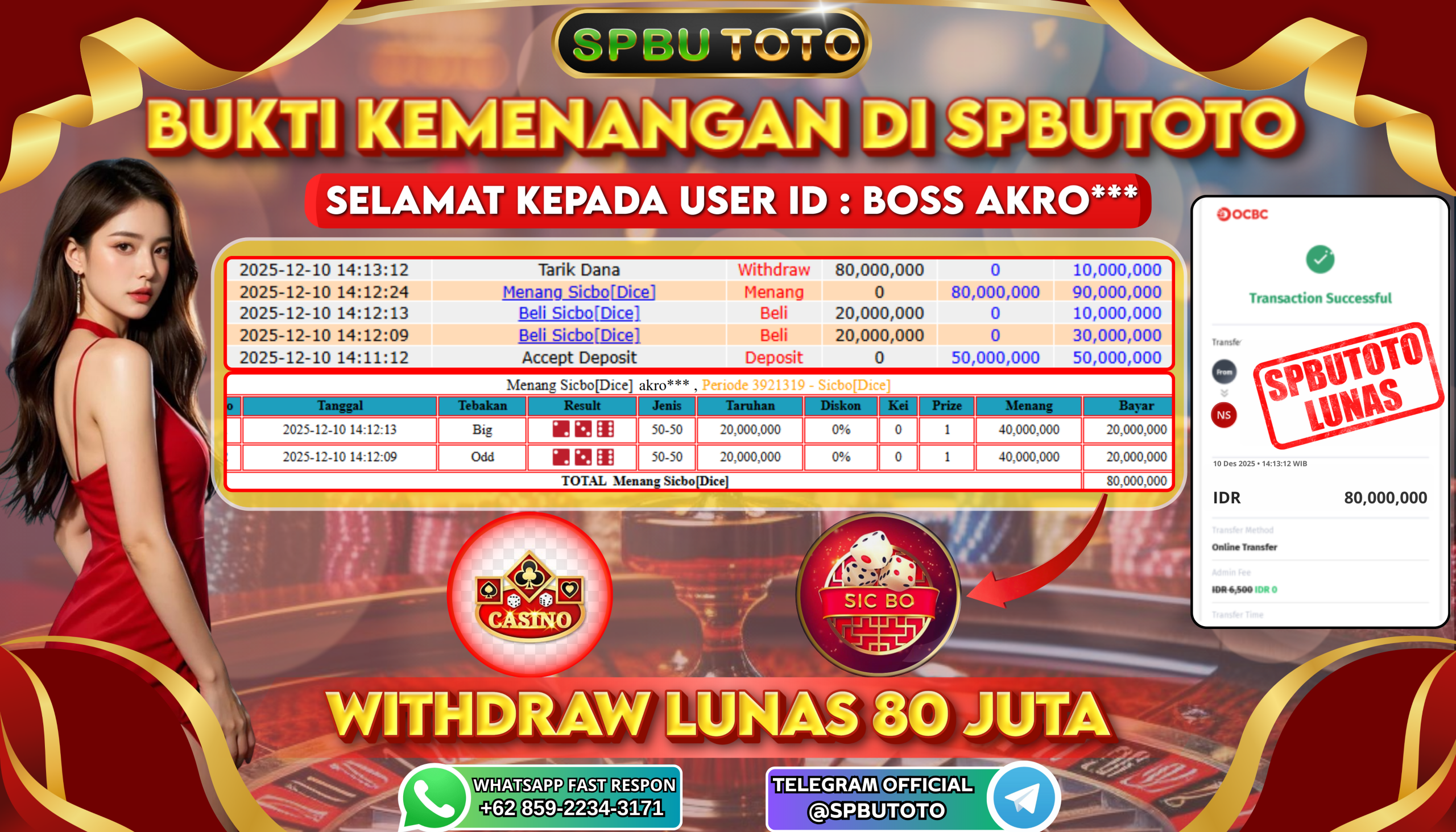 BUKTI JACKPOT LIVE GAME 11 Desember 2025 Posted by Customer Service 2 SICBO DICE RABU, 10 DESEMBER 2025 RP 80.000.000,- SELAMAT KEPADA PEMENANG, SALAM JP! Updated: 11 Desember 2025 at 09:37 ◀ PREDIKSI KENTUCKY EVE BUKTI JACKPOT TOGEL ONLINE ▶