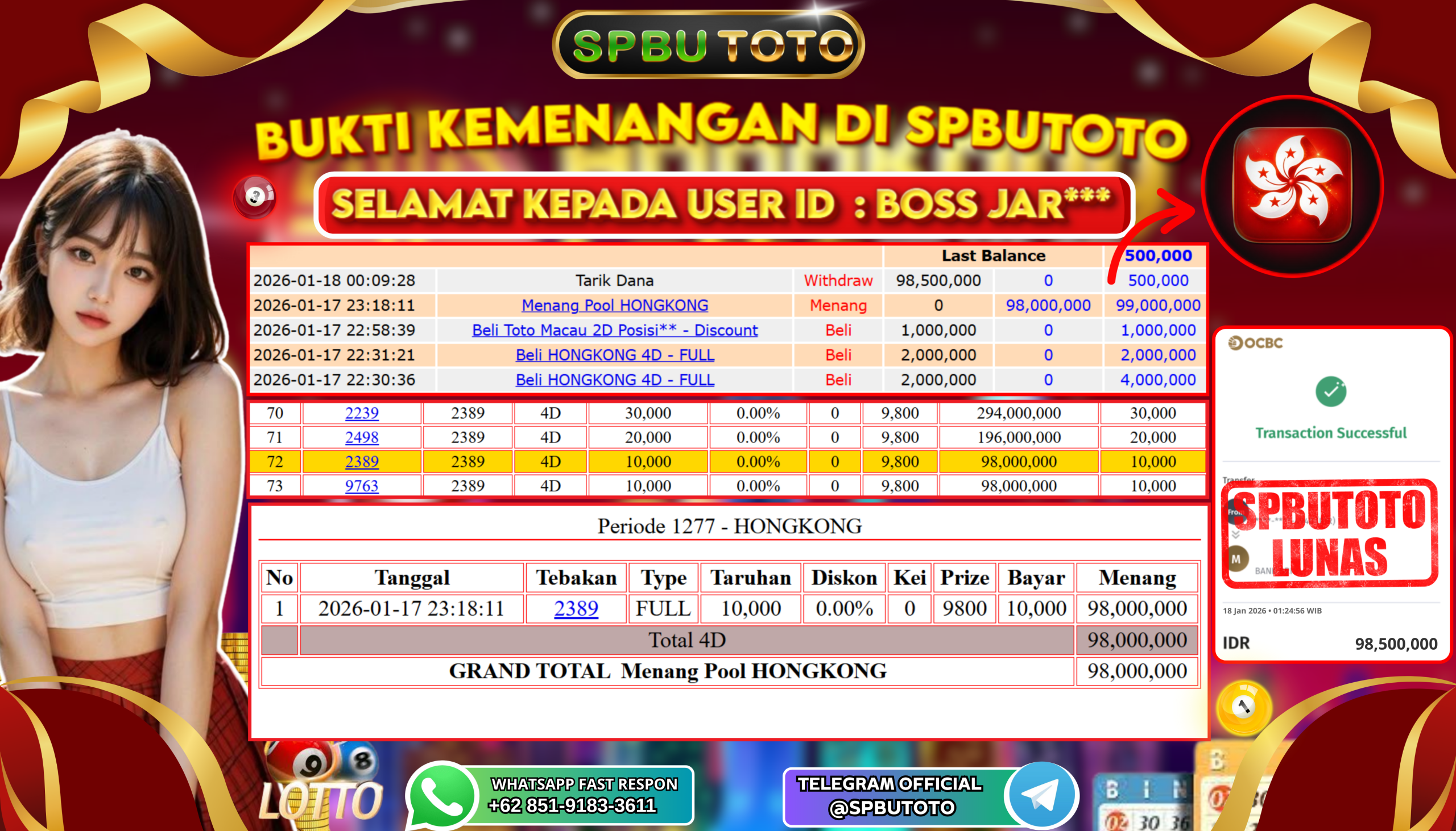 BUKTI JACKPOT TOGEL ONLINE 18 Januari 2026 Posted by Admin SPBUTOTO HONGKONG MINGGU, 18 JANUARI 2026 RP 98,500,000,- SELAMAT KEPADA PEMENANG, SALAM JP Updated: 18 Januari 2026 at 03:27 ◀ BUKTI JACKPOT SLOT GAME PREDIKSI JAPAN ▶