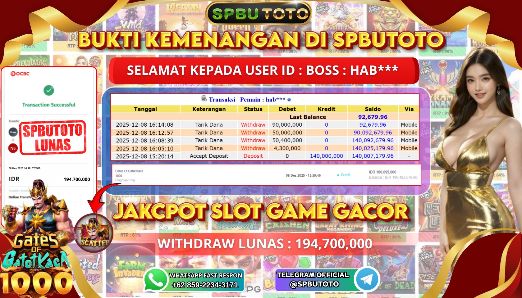BUKTI JACKPOT SLOT GAMES 8 Desember 2025 Posted by Customer Service 2 GATES OF GATOTKACA 1000 SENIN, 08 DESEMBER 2025 RP 194.700.000,- SELAMAT KEPADA PEMENANG, SALAM JP Updated: 10 Desember 2025 at 21:07 ◀ PREDIKSI HONGKONG LOTTO BUKTI JACKPOT SLOT GAMES ▶