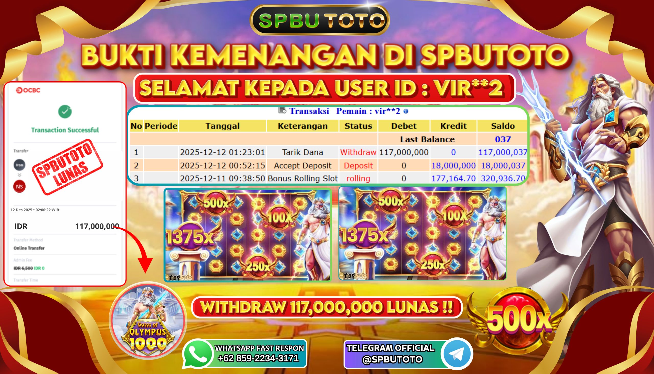 BUKTI JACKPOT SLOT GAMES 12 Desember 2025 Posted by Customer Service 2 GATE OF OLYMPUS 1000 JUMAT, 12 DESEMBER 2025 RP 117.000.000,- SELAMAT KEPADA PEMENANG, SALAM JP Updated: 12 Desember 2025 at 05:33 ◀ PREDIKSI OREGON 03 BUKTI JACKPOT LIVE GAME ▶