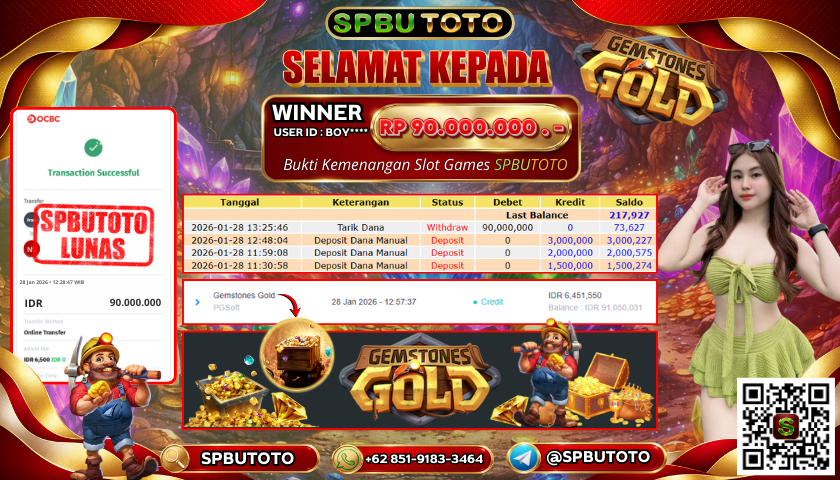 BUKTI JACKPOT SLOT GAMES 28 Januari 2026 Posted by Admin SPBUTOTO GEMSTONES GOLD RABU, 28 JANUARI 2026 RP 90,000,000,- SELAMAT KEPADA PEMENANG, SALAM JP Updated: 28 Januari 2026 at 14:17 ◀ BUKTI JACKPOT SLOT GAMES BUKTI JACKPOT SLOT GAMES ▶