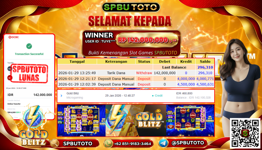 BUKTI JACKPOT SLOT GAMES 29 Januari 2026 Posted by Admin SPBUTOTO GOLD BLITZ KAMIS, 29 JANUARI 2026 RP 142,000,000,- SELAMAT KEPADA PEMENANG, SALAM JP Updated: 29 Januari 2026 at 15:09 ◀ BUKTI JACKPOT SLOT GAMES BUKTI JACKPOT SLOT GAMES ▶