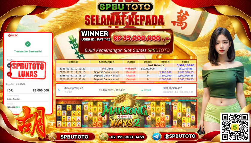 BUKTI JACKPOT SLOT GAMES 31 Januari 2026 Posted by Admin SPBUTOTO MAHJONG WAYS 2 SABTU, 31 JANUARI 2026 RP 85,000,000,- SELAMAT KEPADA PEMENANG, SALAM JP Updated: 31 Januari 2026 at 14:25 ◀ BUKTI JACKPOT SLOT GAMES BUKTI JACKPOT TOGEL ONLINE ▶