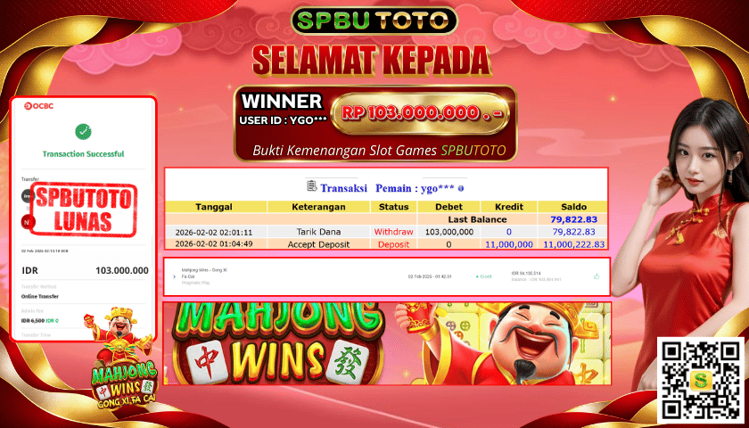 BUKTI JACKPOT SLOT GAMES 2 Februari 2026 Posted by Admin SPBUTOTO MAHJONG WINS – GONG XI FA CAI SENIN, 02 FEBRUARI 2026 RP 103,000,000,- SELAMAT KEPADA PEMENANG, SALAM JP Updated: 2 Februari 2026 at 03:19 ◀ PREDIKSI KENTUCKY EVE BUKTI JACKPOT SLOT GAMES ▶