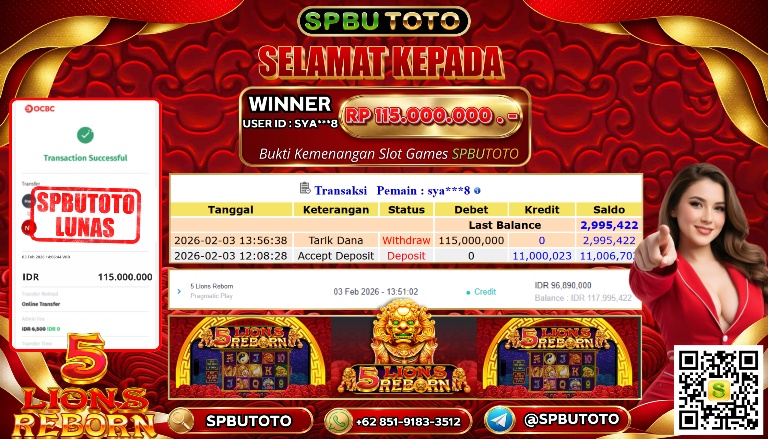 BUKTI JACKPOT SLOT GAMES 3 Februari 2026 Posted by Admin SPBUTOTO 5 LIONS REBORN SELASA, 03 FEBRUARY 2026 RP 115,000,000,- SELAMAT KEPADA PEMENANG, SALAM JP Updated: 3 Februari 2026 at 15:23 ◀ BUKTI JACKPOT LIVE GAMES PREDIKSI OREGON 06 ▶