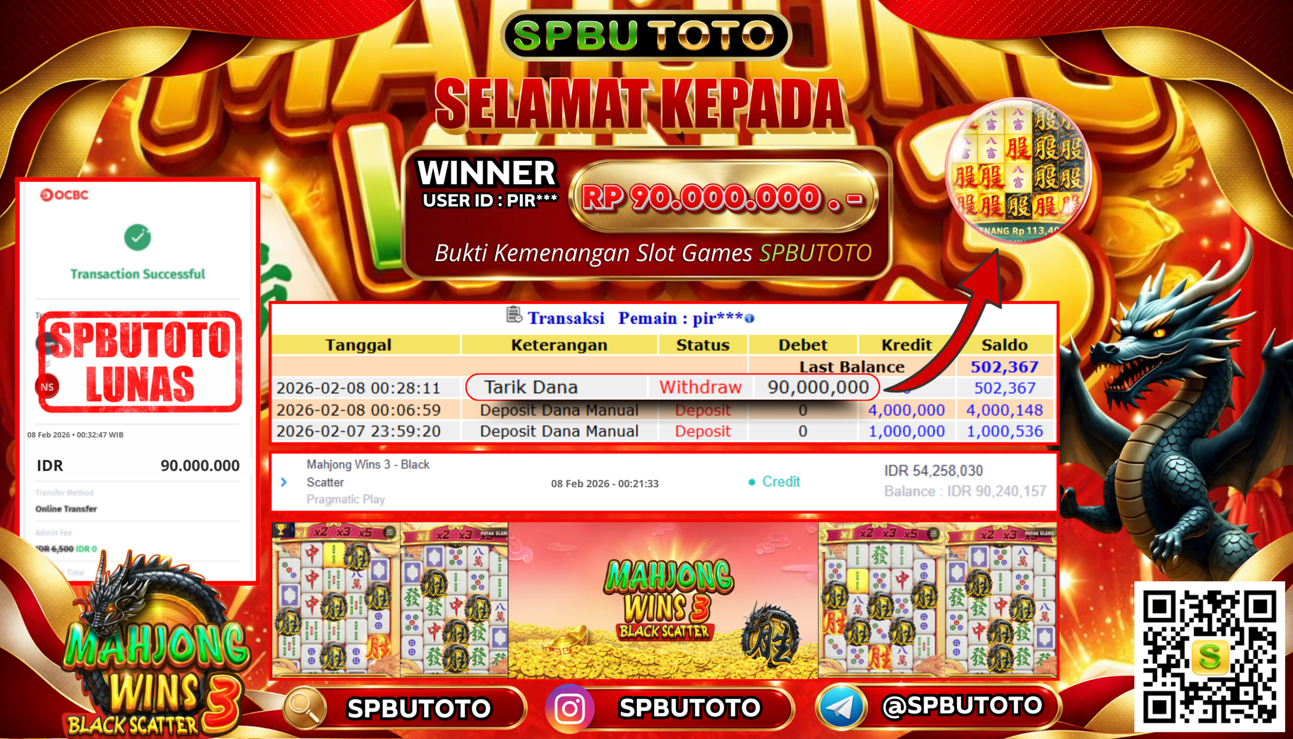 BUKTI JACKPOT SLOT GAMES 8 Februari 2026 Posted by Admin SPBUTOTO MAHJONG WINS 3 – BLACK SCATTER MINGGU, 08 FEBRUARY 2026 RP 90,000,000,- SELAMAT KEPADA PEMENANG, SALAM JP Updated: 8 Februari 2026 at 15:21 ◀ PREDIKSI PCSO BUKTI JACKPOT SLOT GAMES ▶