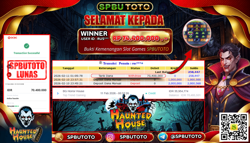 BUKTI JACKPOT SLOT GAMES 11 Februari 2026 Posted by Admin SPBUTOTO BG HORROR HOUSE RABU , 11 FEBRUARY 2026 RP 74,400,000,- SELAMAT KEPADA PEMENANG, SALAM JP Updated: 11 Februari 2026 at 01:24 ◀ BUKTI JACKPOT SLOT GAMES PREDIKSI JITU SINGAPORE POOLS ▶