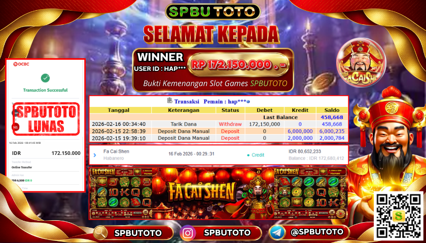 BUKTI JACKPOT SLOT GAMES 16 Februari 2026 Posted by Admin SPBUTOTO FACAI SHEN SENIN, 16 FEBRUARY 2026 RP 172,150,000,- SELAMAT KEPADA PEMENANG, SALAM JP Updated: 16 Februari 2026 at 02:08 ◀ BUKTI JACKPOT SLOT GAMES BUKTI JACKPOT SLOT GAMES ▶