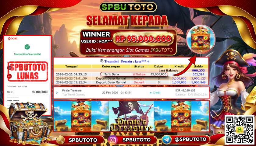 BUKTI JACKPOT SLOT GAMES 22 Februari 2026 Posted by Admin SPBUTOTO PIRATE TREASURE MINGGU, 22 FEBRUARY 2026 RP 95,000,000,- SELAMAT KEPADA PEMENANG, SALAM JP Updated: 22 Februari 2026 at 04:54 ◀ BUKTI JACKPOT SLOT GAMES BUKTI JACKPOT SLOT GAMES ▶