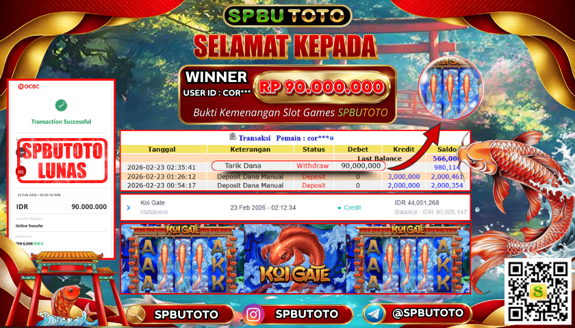 BUKTI JACKPOT SLOT GAMES 23 Februari 2026 Posted by Admin SPBUTOTO KOI GATE SENIN, 23 FEBRUARY 2026 RP 90,000,000,- SELAMAT KEPADA PEMENANG, SALAM JP Updated: 23 Februari 2026 at 02:59 ◀ BUKTI JACKPOT SLOT GAMES BUKTI JACKPOT SLOT GAMES ▶