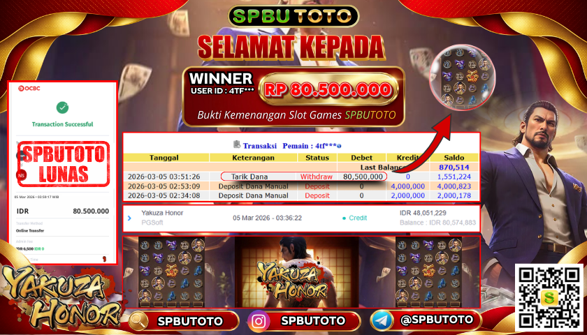 BUKTI JACKPOT SLOT GAMES 5 Maret 2026 Posted by Admin SPBUTOTO YAKUZA HONOR KAMIS, 05 MARET 2026 RP 80,500,000,- SELAMAT KEPADA PEMENANG, SALAM JP Updated: 5 Maret 2026 at 04:20 ◀ BUKTI JACKPOT SLOT GAMES BUKTI JACKPOT SLOT GAMES ▶