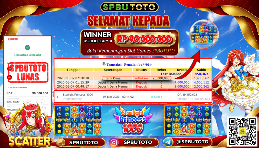 BUKTI JACKPOT SLOT GAMES 7 Maret 2026 Posted by Admin SPBUTOTO STARLIGHT PRINCESS 1000 SABTU, 07 MARET 2026 RP 90,000,000,- SELAMAT KEPADA PEMENANG, SALAM JP Updated: 7 Maret 2026 at 03:46 ◀ BUKTI JACKPOT SLOT GAMES BUKTI JACKPOT SLOT GAMES ▶