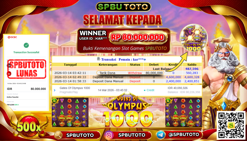 BUKTI JACKPOT SLOT GAMES 14 Maret 2026 Posted by Admin SPBUTOTO GATES OF OLYMPUS 1000 SABTU, 14 MARET 2026 RP 80,000,000,- SELAMAT KEPADA PEMENANG, SALAM JP Updated: 14 Maret 2026 at 04:41 ◀ PREDIKSI JITU TOTO MACAU 4D BUKTI JACKPOT SLOT GAMES ▶