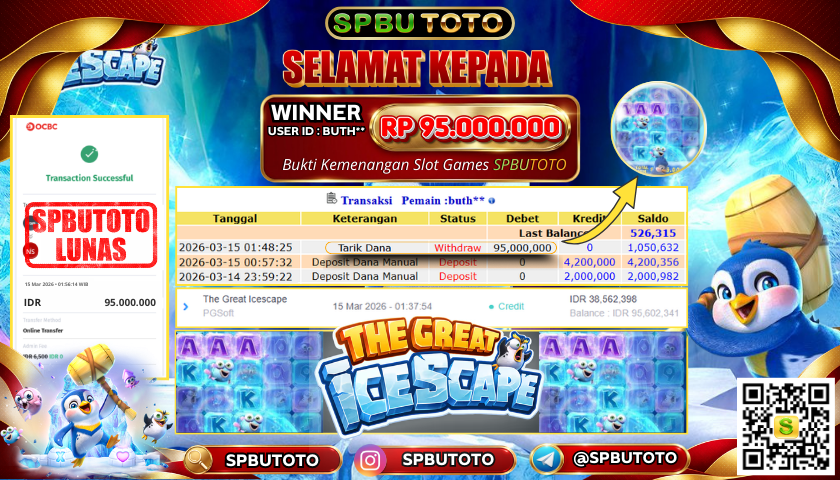 BUKTI JACKPOT SLOT GAMES 15 Maret 2026 Posted by Admin SPBUTOTO THE GREAT ICESCAPE MINGGU, 15 MARET 2026 RP 95,000,000,- SELAMAT KEPADA PEMENANG, SALAM JP Updated: 15 Maret 2026 at 01:24 ◀ BUKTI JACKPOT SLOT GAMES PREDIKSI JITU CAMBODIA POOLS ▶