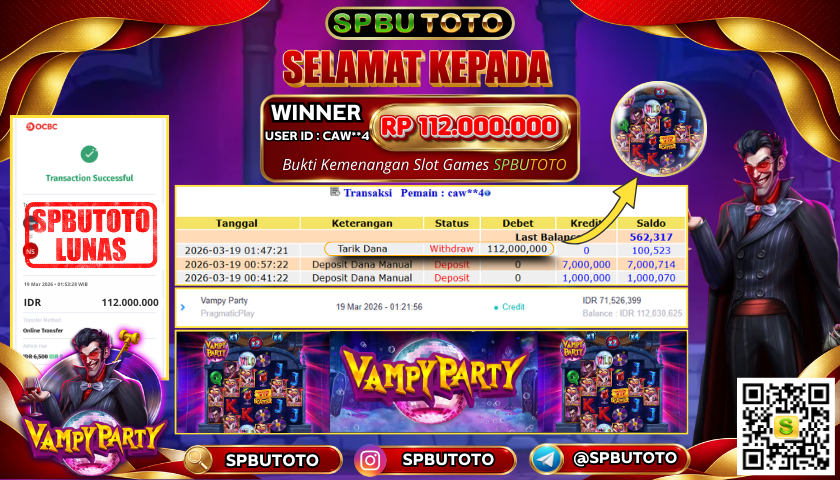 BUKTI JACKPOT SLOT GAMES 19 Maret 2026 Posted by Admin SPBUTOTO VAMPY PARTY KAMIS, 19 MARET 2026 RP 112,000,000,- SELAMAT KEPADA PEMENANG, SALAM JP Updated: 19 Maret 2026 at 02:23 ◀ PREDIKSI JITU CAMBODIA POOLS BUKTI JACKPOT SLOT GAMES ▶
