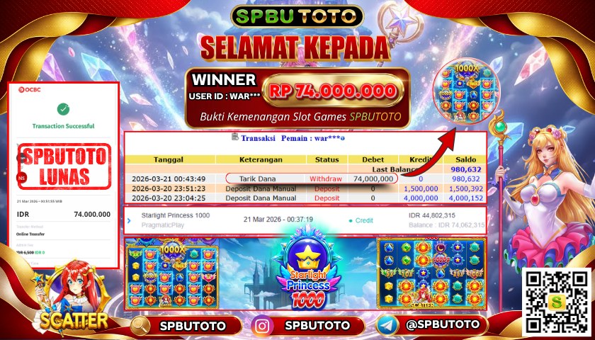 BUKTI JACKPOT SLOT GAMES 21 Maret 2026 Posted by Admin SPBUTOTO POWER OF ODIN SABTU, 21 MARET 2026 RP 74,000,000,- SELAMAT KEPADA PEMENANG, SALAM JP Updated: 21 Maret 2026 at 04:28 ◀ BUKTI JACKPOT SLOT GAMES BUKTI JACKPOT SLOT GAMES ▶