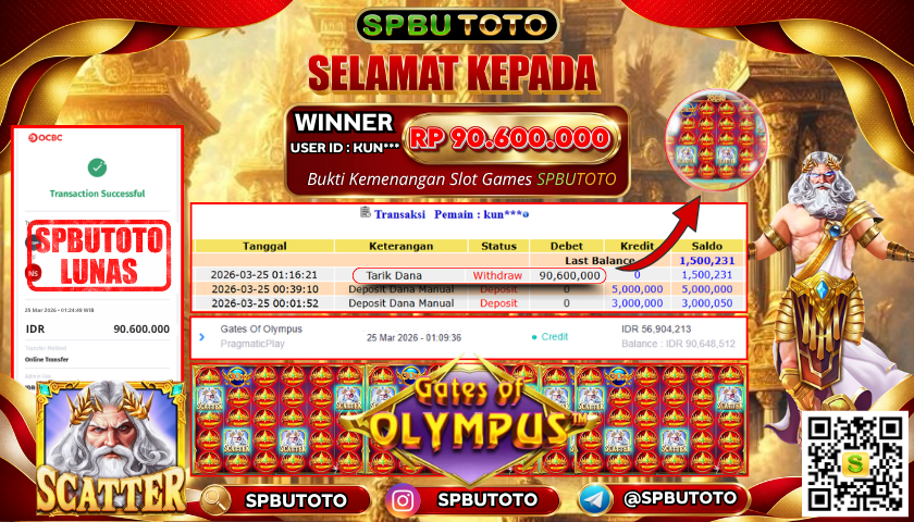 BUKTI JACKPOT SLOT GAMES 25 Maret 2026 Posted by Admin SPBUTOTO GATES OF OLYMPUS RABU, 25 MARET 2026 RP 90,600,000,- SELAMAT KEPADA PEMENANG, SALAM JP Updated: 25 Maret 2026 at 03:12 ◀ BUKTI JACKPOT SLOT GAMES BUKTI JACKPOT SLOT GAMES ▶