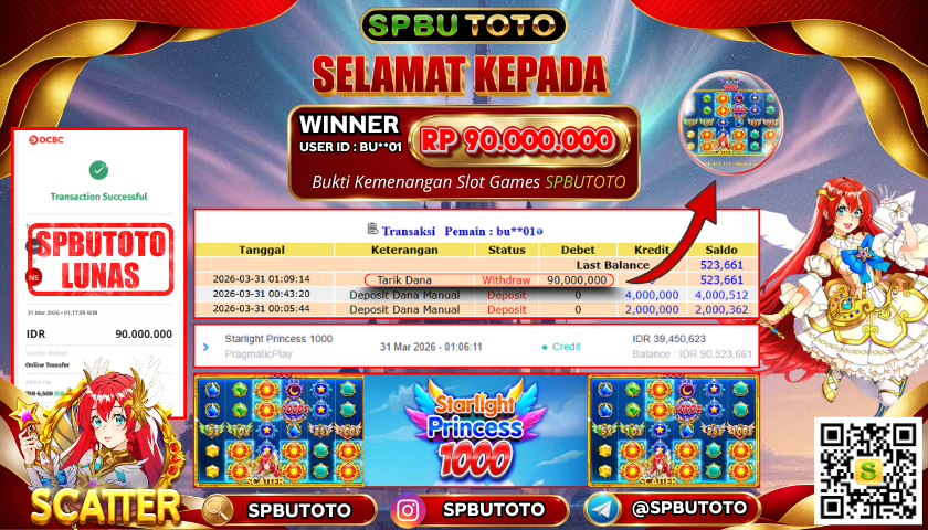 BUKTI JACKPOT SLOT GAMES 31 Maret 2026 Posted by Admin SPBUTOTO STARLIGHT PRINCESS 1000 SELASA, 31 MARET 2026 RP 90.000.000.- SELAMAT KEPADA PEMENANG, SALAM JP Updated: 31 Maret 2026 at 03:32 ◀ BUKTI JACKPOT SLOT GAMES PREDIKSI JITU OREGON06 POOLS ▶