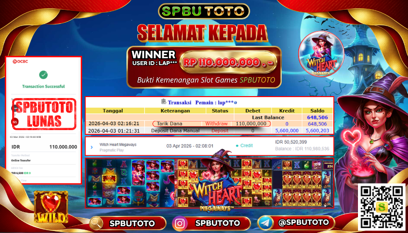 BUKTI JACKPOT SLOT GAMES 3 April 2026 Posted by Admin SPBUTOTO WITCH HEART JUMAT, 03 APRIL 2026 RP 110.000.000 SELAMAT KEPADA PEMENANG, SALAM JP Updated: 3 April 2026 at 07:10 ◀ BUKTI JACKPOT SLOT GAMES BUKTI JACKPOT SLOT GAMES ▶