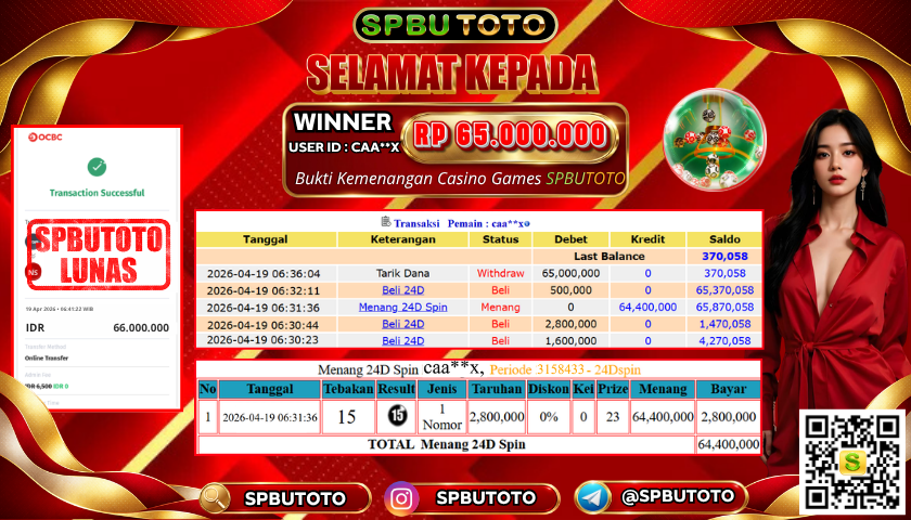 BUKTI JP LIVECASINO 19 April 2026 Posted by Admin SPBUTOTO 24D SPIN MINGGU, 19 APRIL 2026 RP 65.000.000 SELAMAT KEPADA PEMENANG, SALAM JP Updated: 19 April 2026 at 06:47 ◀ BUKTI JP LIVECASINO BUKTI JP SLOT GAME ▶