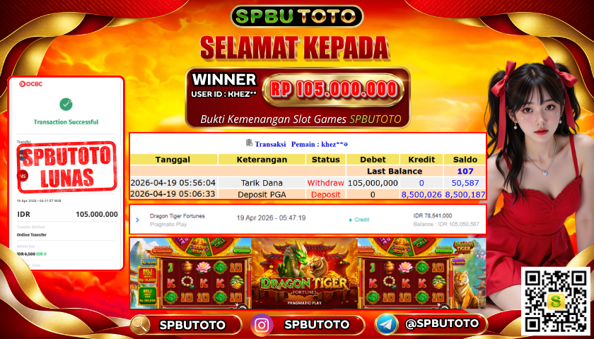 BUKTI JP SLOT GAME 19 April 2026 Posted by Admin SPBUTOTO DRAGON TIGER FORTUNES MINGGU, 19 APRIL 2026 RP 105.000.000 SELAMAT KEPADA PEMENANG, SALAM JP Updated: 19 April 2026 at 06:49 ◀ BUKTI JP SLOT GAME PREDIKSI JITU OREGON09 POOLS ▶