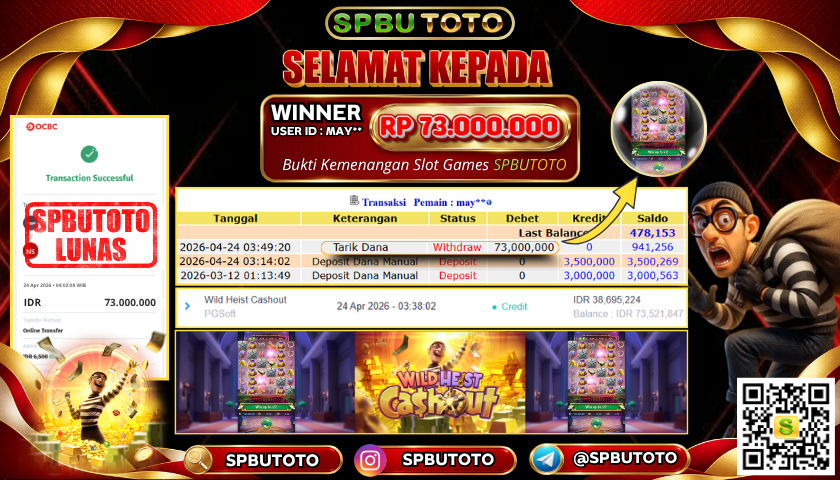 BUKTI JP SLOT GAME 24 April 2026 Posted by Admin SPBUTOTO WILD HEIST CASHOUT JUMAT, 24 APRIL 2026 RP 73.000.000 SELAMAT KEPADA PEMENANG, SALAM JP Updated: 24 April 2026 at 05:49 ◀ PREDIKSI JITU PCSO POOLS BUKTI JP LIVECASINO ▶