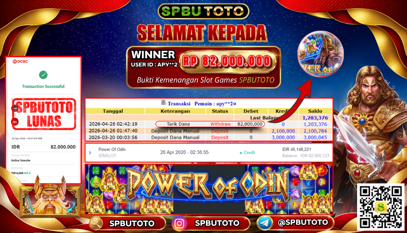 BUKTI JP SLOT GAME 26 April 2026 Posted by Admin SPBUTOTO POWER OF ODIN MINGGU, 26 APRIL 2026 RP 82.000.000 SELAMAT KEPADA PEMENANG, SALAM JP Updated: 26 April 2026 at 08:03 ◀ PREDIKSI JITU KENTUCKY EVE BUKTI JP SLOT GAME ▶